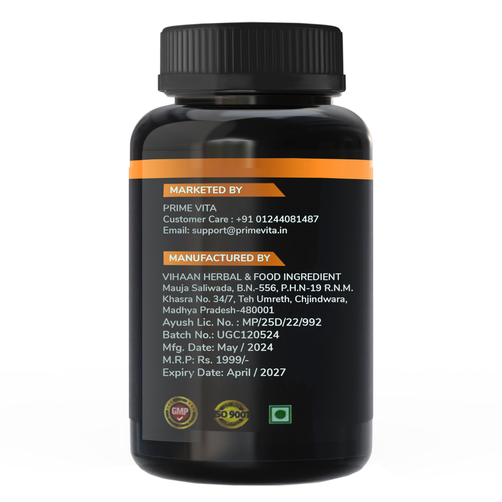 Discover the power of Ashwagandha, a revered adaptogen known for its ability to ease stress, enhance stamina, and improve overall vitality. Primevita brings you a potent 1000mg dose of premium-quality Ashwagandha extract in convenient, easy-to-swallow capsules.